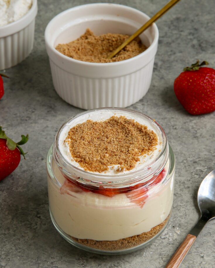 High Protein Strawberry Cheesecake Jars are the perfect jars to prep for a breakfast or a healthier dessert.